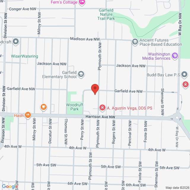 you can park on street or in Garfield Elementary School Parking Lot. Enter throught the gate next to building small parking lot